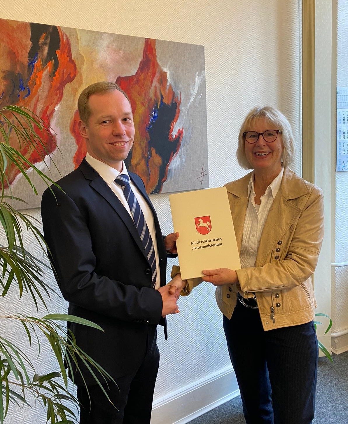 Richter am Landgericht Jan-Patrick Klein ist am 15.03.2024 zum Vorsitzenden Richter am Landgericht ernannt worden. Die Präsidentin des Landgerichts, Frauke Seewald, überreichte ihm seine von der Niedersächsischen Justizministerin unterzeichnete Ernennungsurkunde.